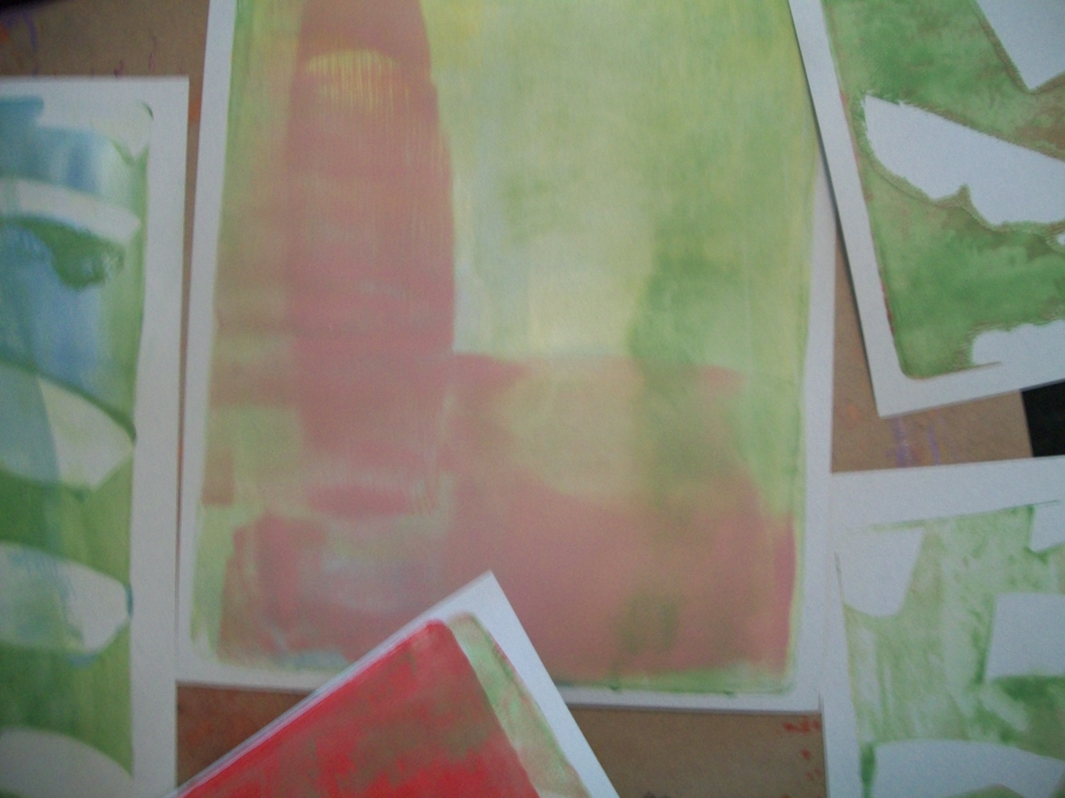 Then I placed cheapo copier paper on top of the painted pattern, burnished it with my hands, and pulled it off to reveal the coolness. My experiments landed me all sorts of great prints (and lots less cheapo paper clogging up my space).