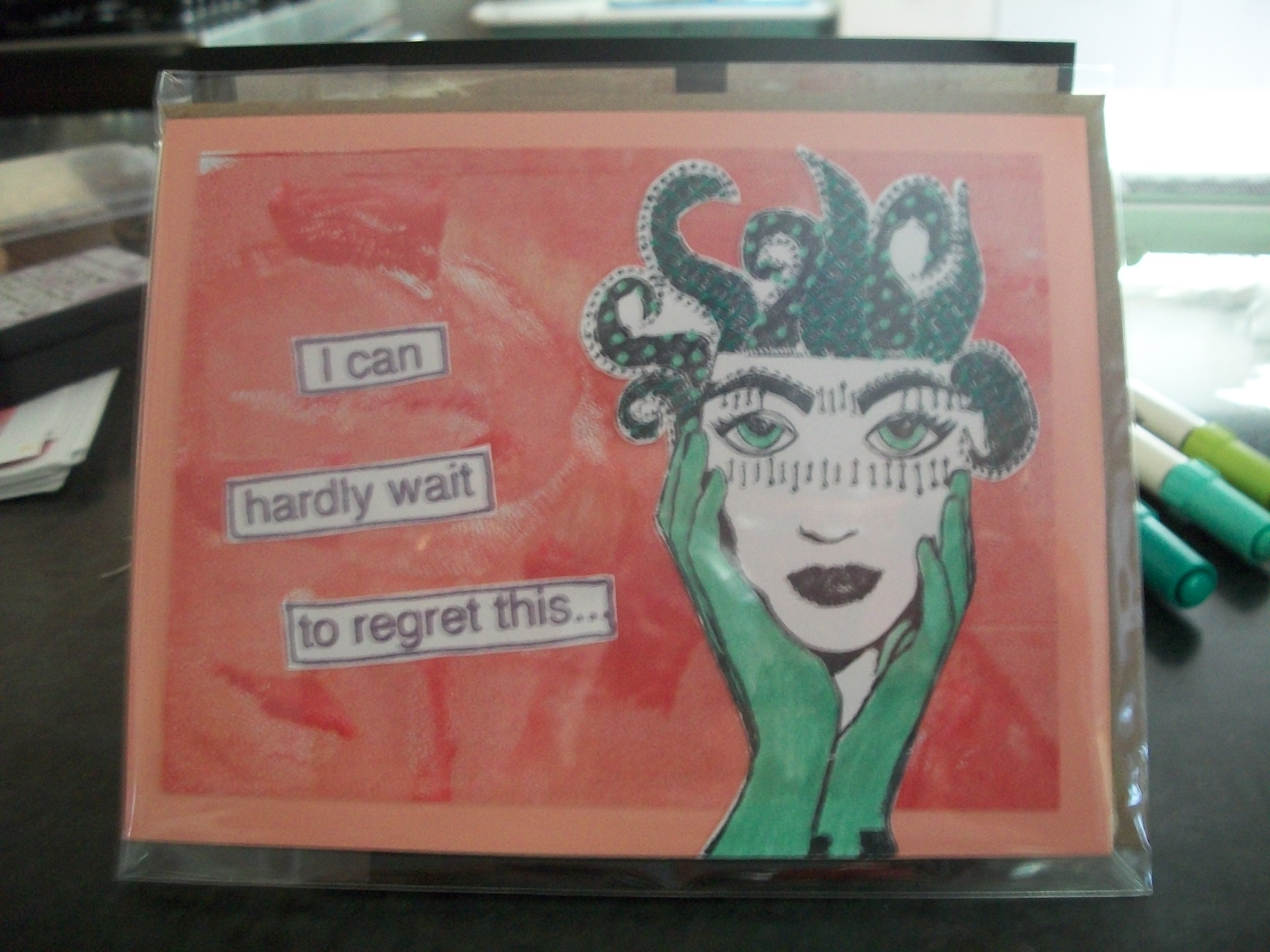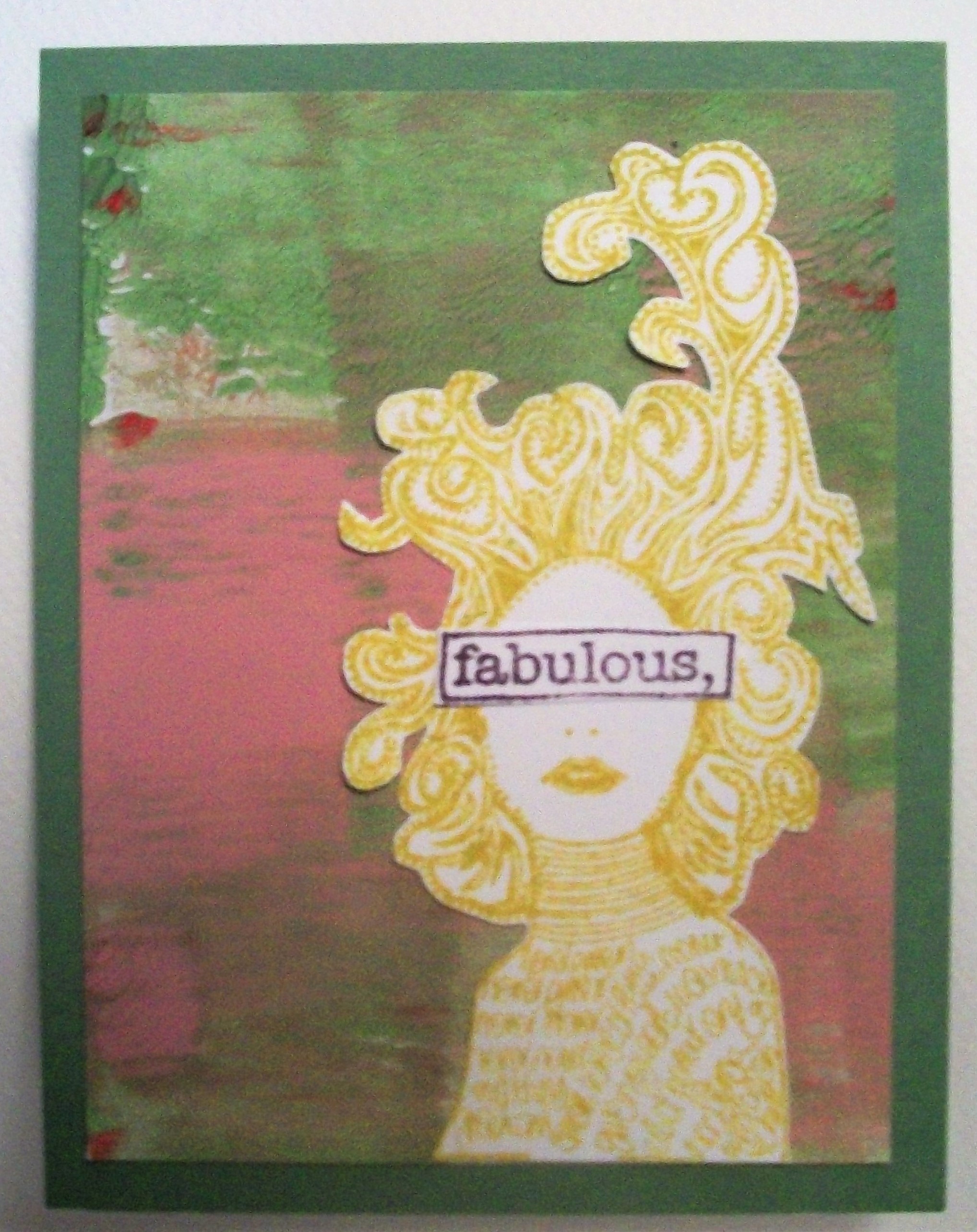 Then I put all the patterned loveliness to work. Thanks to Dyan Reavely’s Dylusions stamps, I created these super cool cards.