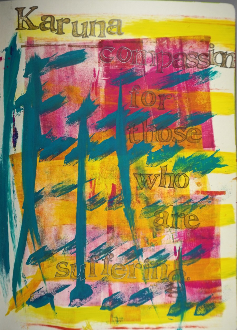 Week two of the Brahmaviharas yoga series was Karuna: or compassion for those who are suffering. I am thankful that I am not suffering like so many folks are today. I have everything I need, and sometimes it feels selfish to be dissatisfied with the quality of my art. I would never consider myself “suffering” because my art isn’t perfect.