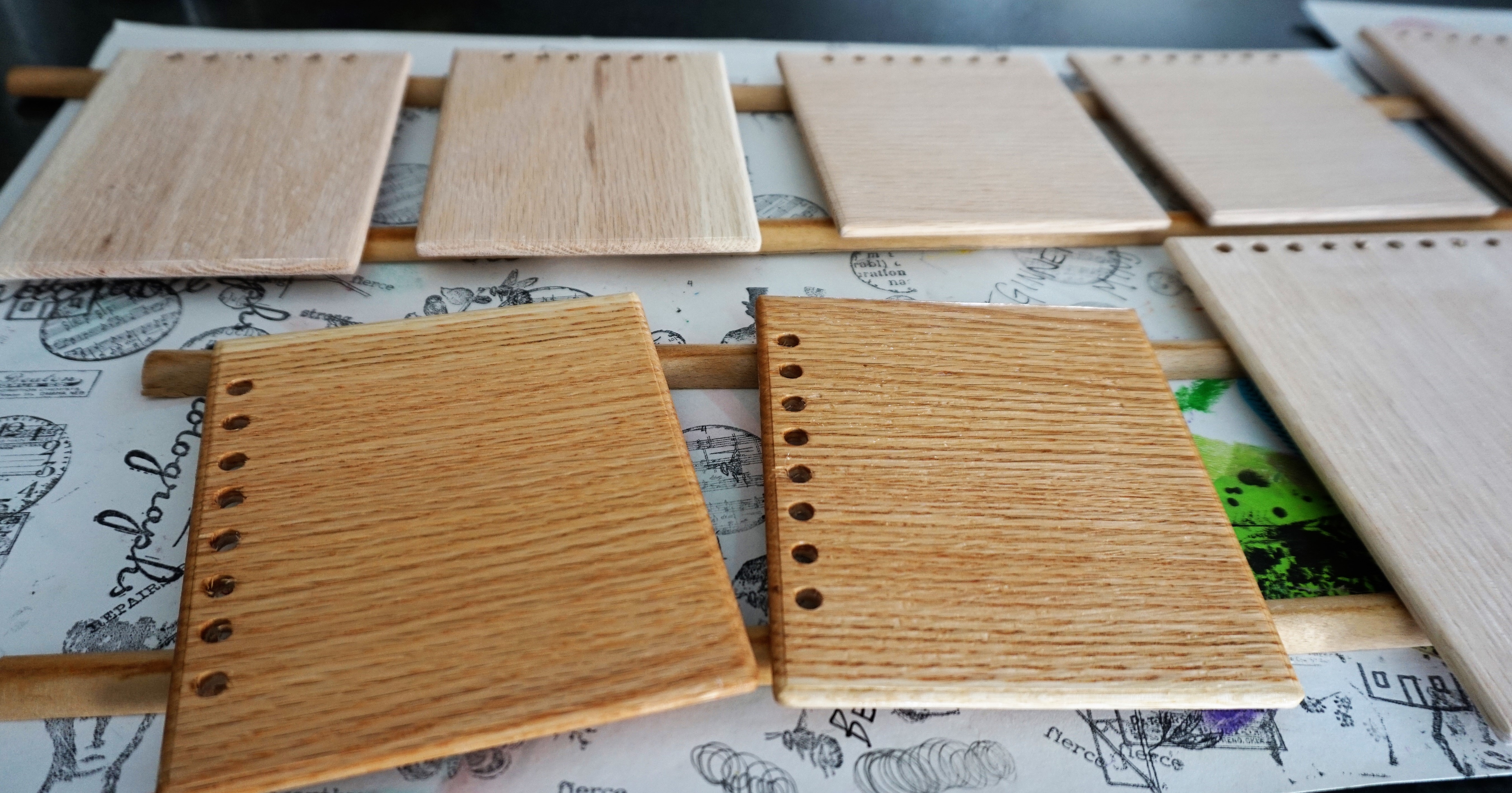 I’ve also got some wooden notebook covers in process. This would be a lot more enjoyable project if I could open some windows, but my drafty kitchen is doing the job.