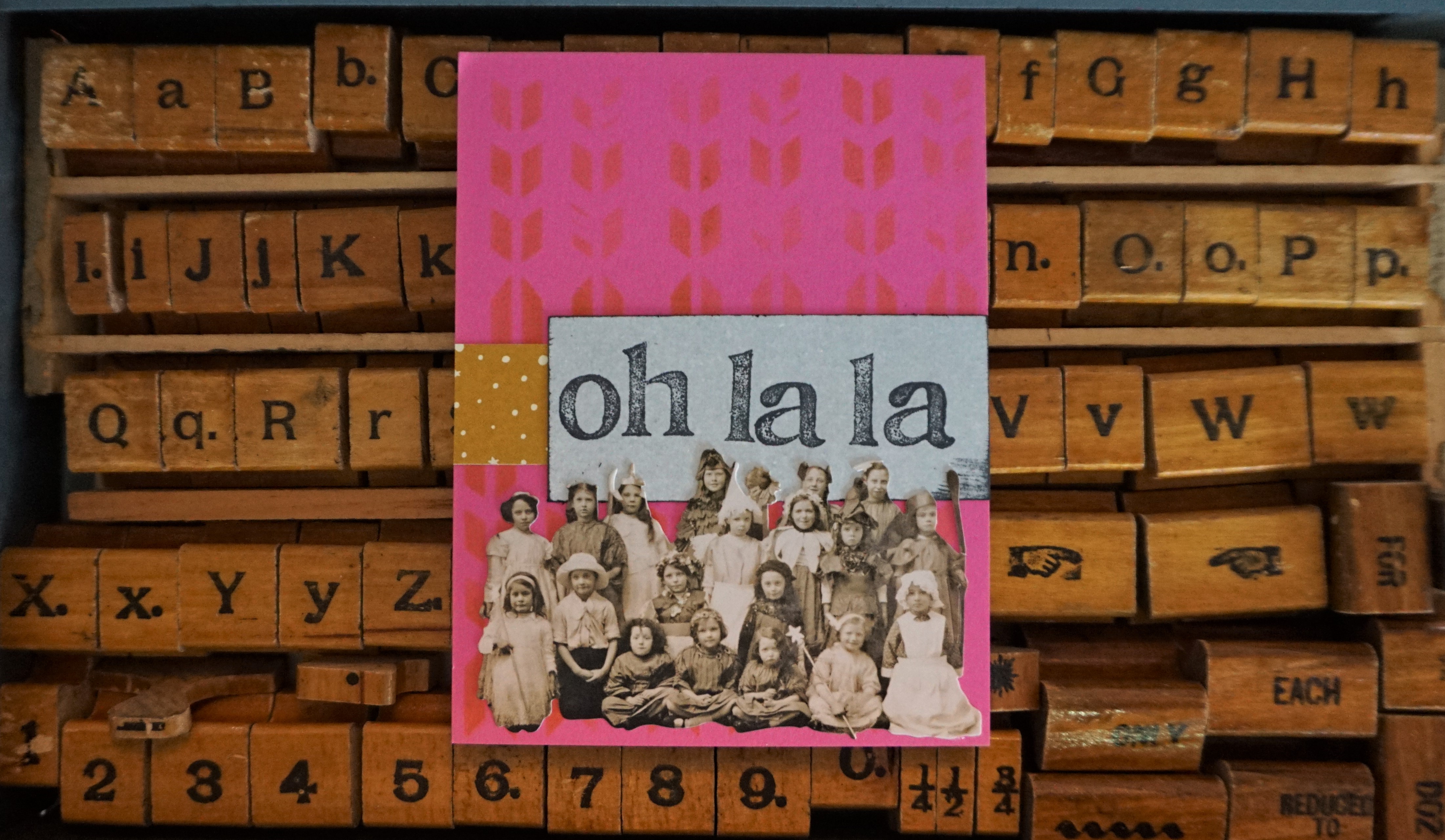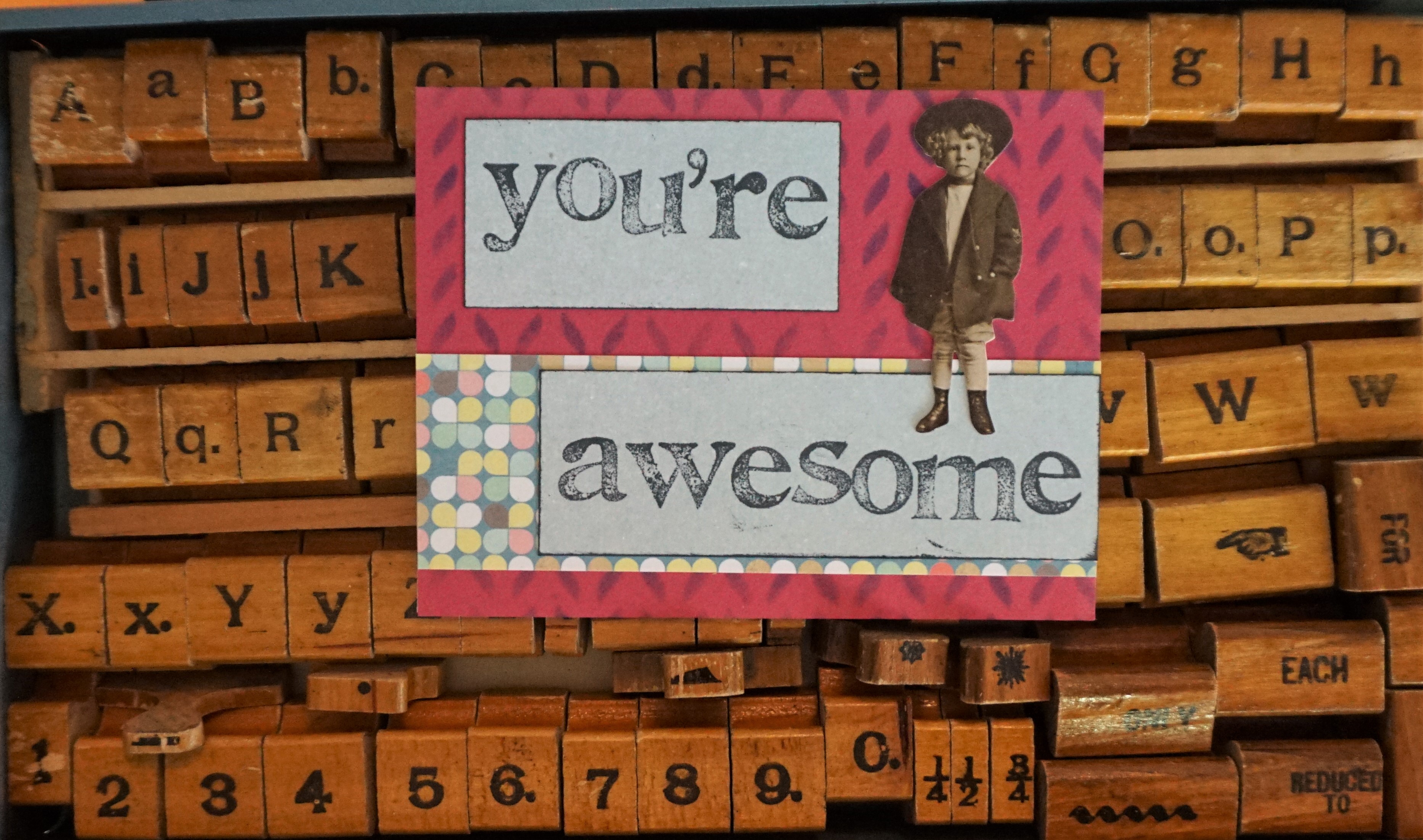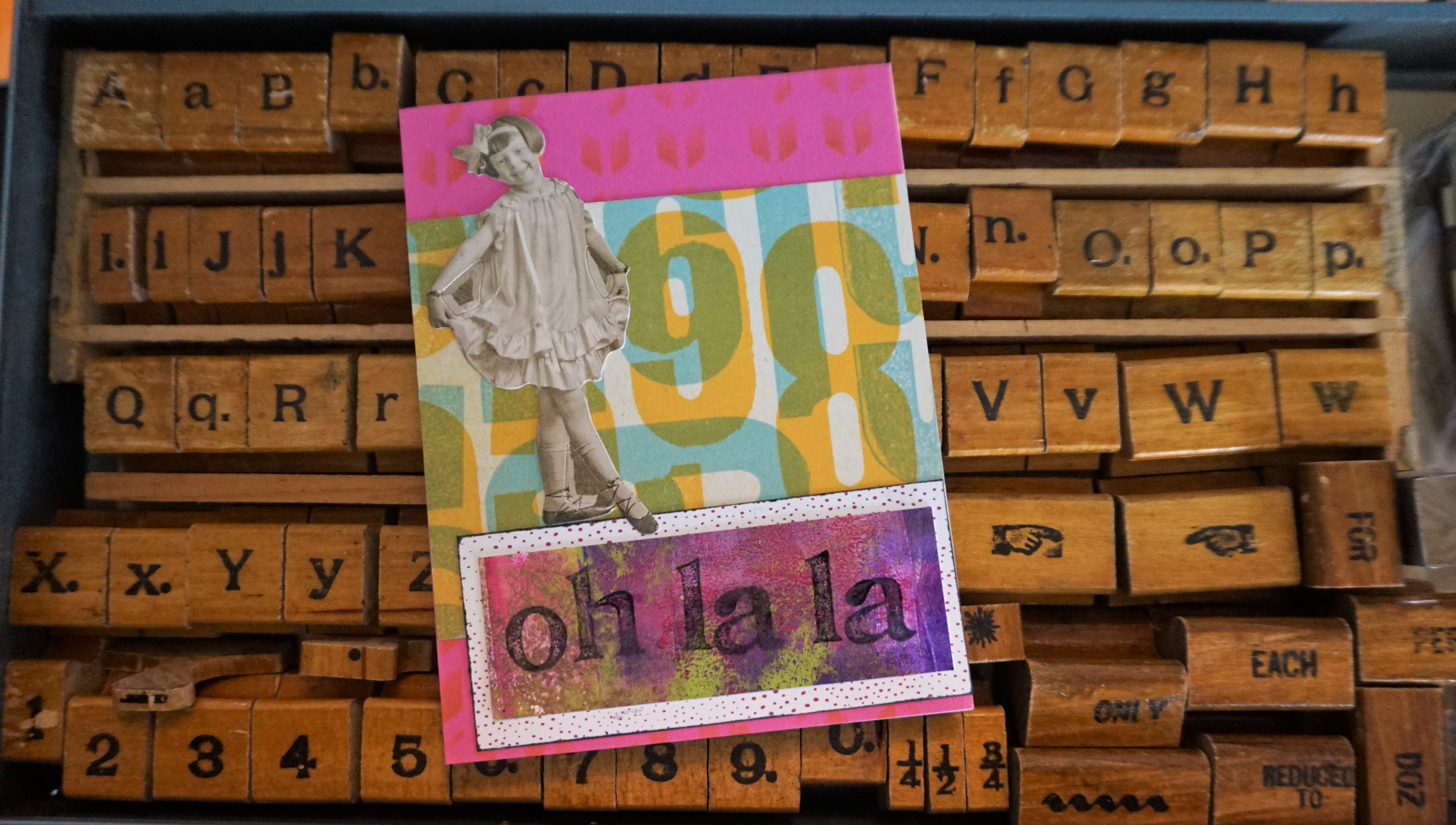 I pulled out some tools I haven’t used in a while; my stencils and vintage alphabet stamps. Having my trusty friends around me helped spark my creativity in a way that the crummy weather has not.