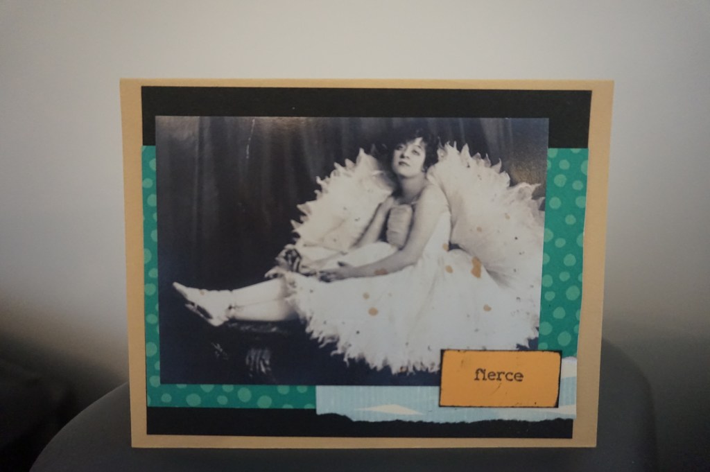 I’m not sure what turned the switch, but I finally realized, my friend wanted a piece of art like the art I make, or she wouldn’t have asked me for something. And then the fun began. I got out the ephemera, the stamps, the old photos and it all came to together.