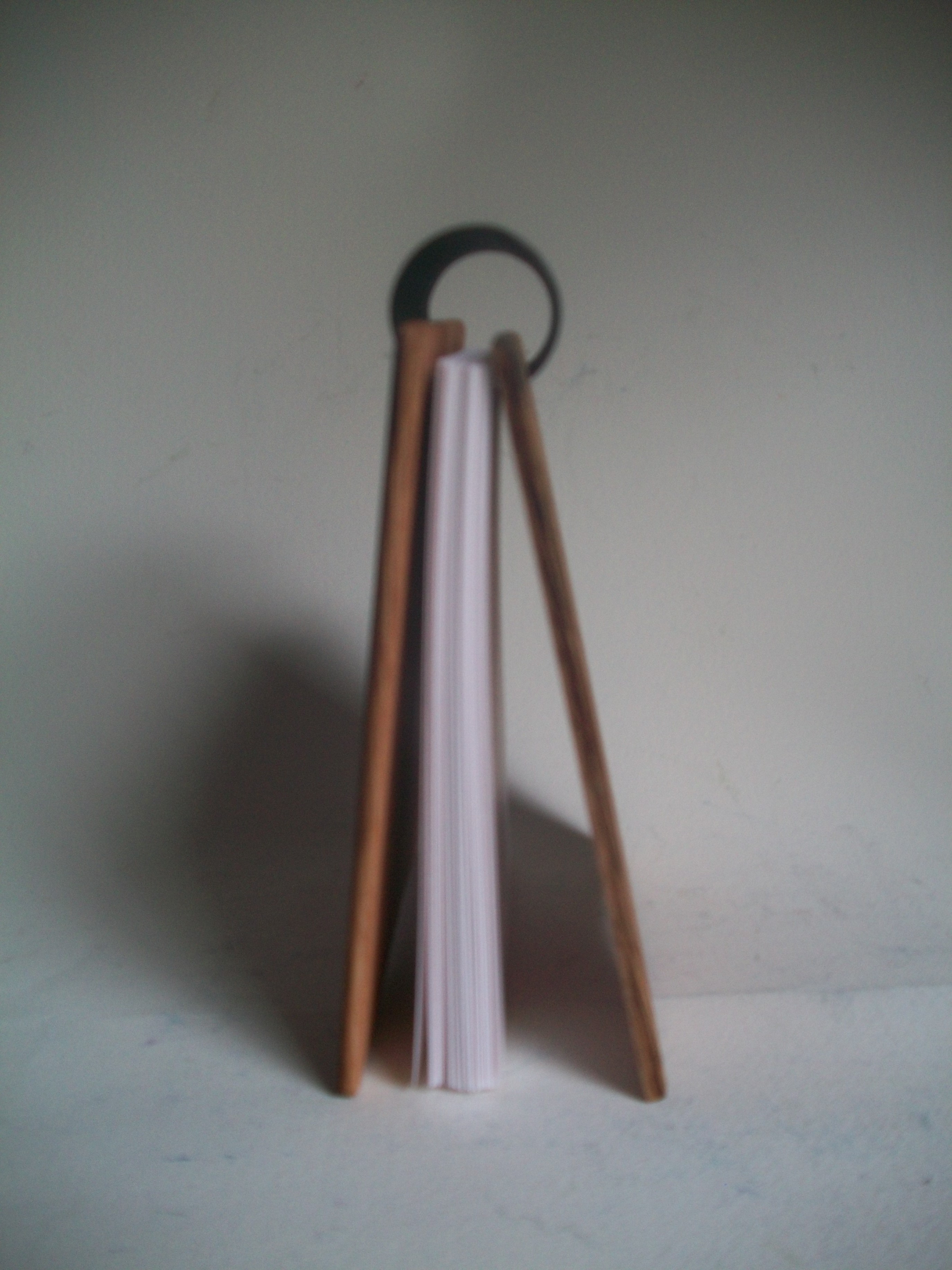 Finished product. 4″ x 5 oak notebook with 50 blank pages.